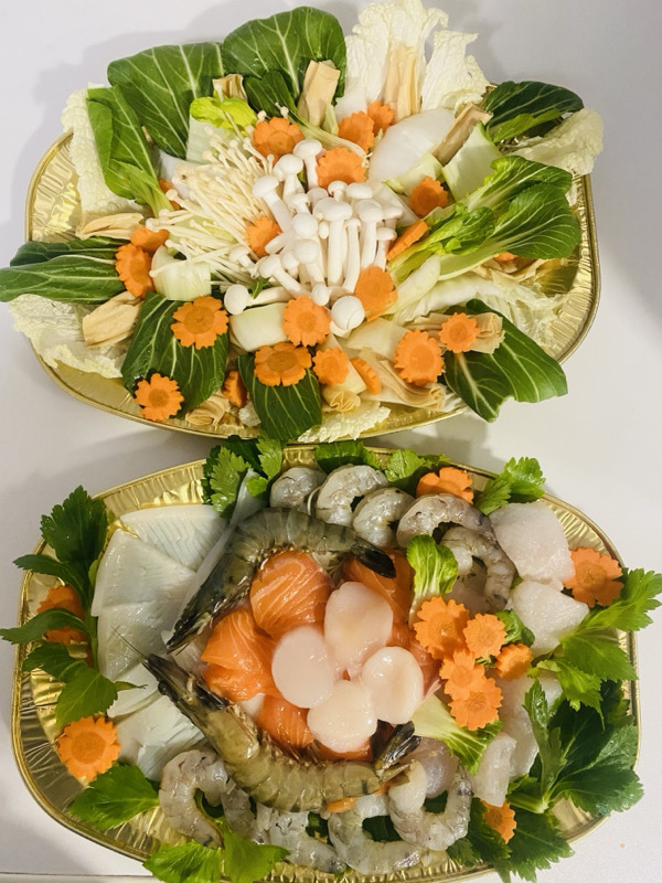 📍Veuillez commander avant 48hBouillon maison sate légèrement épicée 🌶️avec nouilles chinois, les légumes asiatique 🥬( chou de chine, park choi , tofu , champignons 🍄🟫 ... Accompagné d’un plateau crevettes 🍤, poisson et la viande de bœuf et poulet .